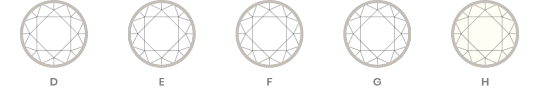- D,E,F – These diamonds are considered Colorless diamonds. The untrained eye will not be able to detect any color when viewing these diamonds
